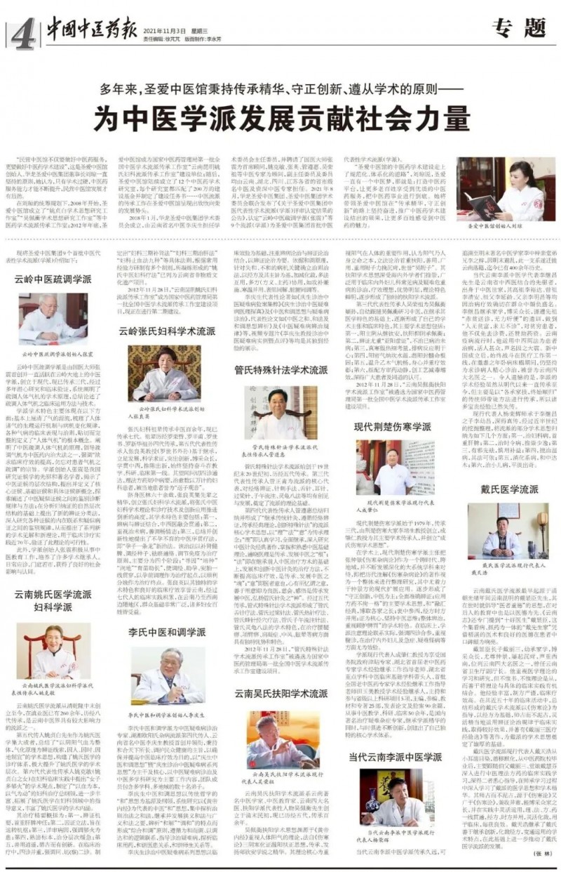 圣愛中醫館秉持傳承精華、守正創新、遵從學術被《中國中醫藥報》整版報道