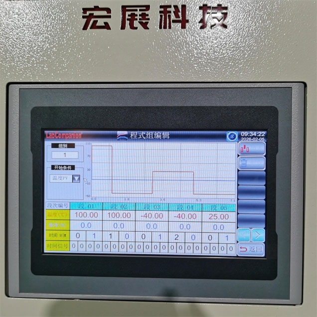 此外,產品搭載智能化控制系統,支持多段程式編輯、溫濕度精準演算與數據記錄,操作便捷且測試過程可追溯,可根據客戶具體測試需求,定制專屬技術規格與操作流程,充分體現宏展科技完善的產品線與強大的非標定制能力。