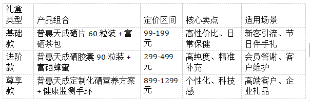 - 根據季節調整禮盒組合,如夏季推出“普惠天成抗氧化防曬”主題禮盒