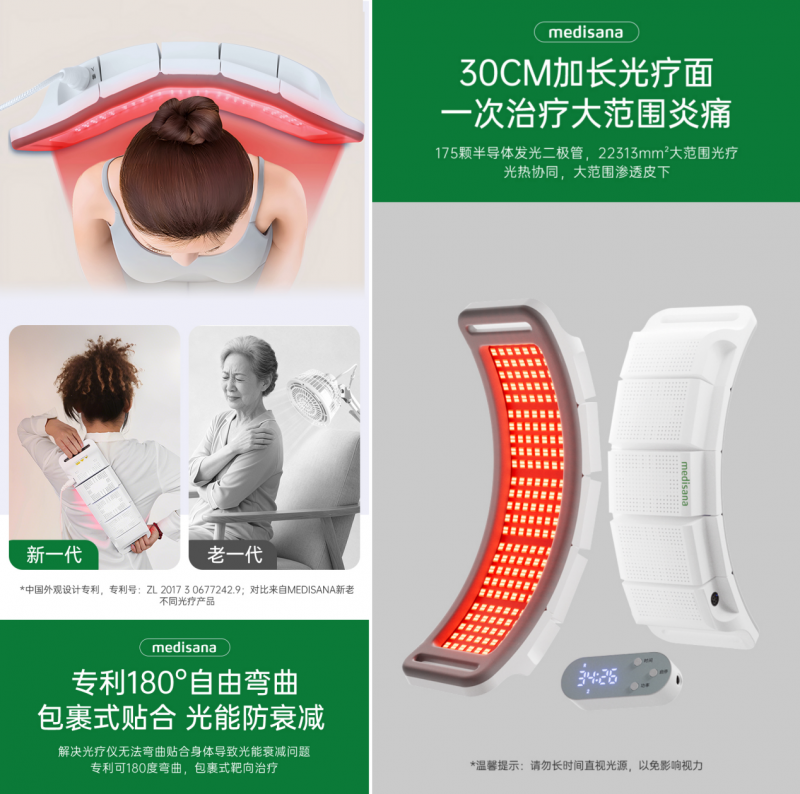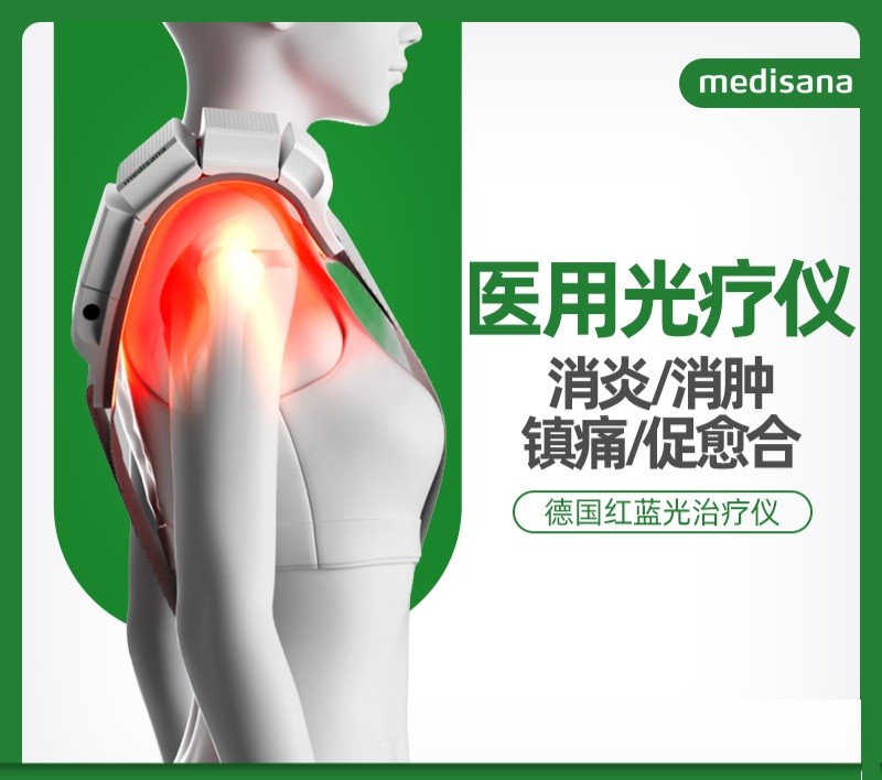 medisana馬德保康德國紅藍光理療儀,以穿戴式設計結合醫用級光療技術,為職場人打造專屬“肩頸腰背救星”,隨時隨地緩解酸痛不適,破解開工勞損難題。不同于普通按摩儀的表層舒緩,這款理療儀采用特定波段的窄譜紅藍光聯合治療,高強度滲透痛點,形成“消炎+鎮痛”雙重守護。藍光率先發揮消炎殺菌作用,緩解肌肉腫脹不適;紅光再深入皮下組織,實現深層鎮痛、促進組織修復,從根源上舒緩肌肉緊張。