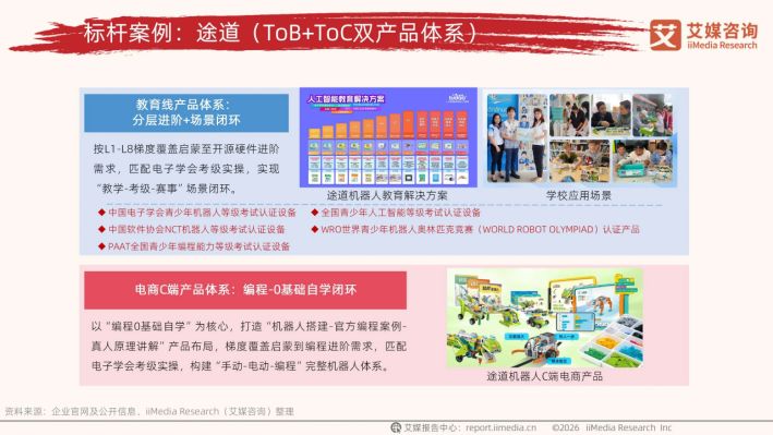2026年1月,全球領先的新經濟產業第三方數據挖掘和分析機構iiMedia Research(艾媒咨詢)在以“逆勢而上,破局增長”為主題的艾媒新消費盛典上發布了《2026年中國新消費趨勢白皮書》,提到當前智能科技賽道迎來爆發期,原生AI終端密集上市服務機器人場景化應用加速,技術正深度重塑消費體驗,在這一進程中,一批以技術創新為驅動、同時精準捕捉市場需求的企業正脫穎而出。廣州途道信息科技有限公司憑借在機器人科創教育領域強勁實力,入選白皮書標桿案例解析。