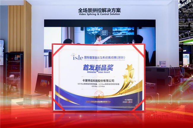 日前在深圳閉幕的ISLE 2026國際智慧顯示及系統集成展上,卡萊特展出的U6 Max與U3 Max旗艦級視頻拼接器榮獲展會“首發新品獎”。作為U系列拼控家族的最新成員,兩款產品在專業評審環節獲得一致認可,成為本屆展會拼控細分領域的亮點之一。