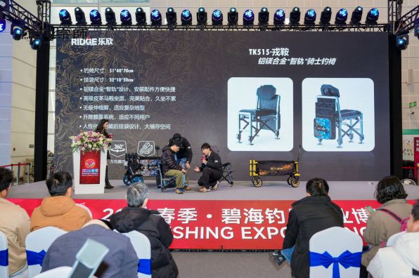 與此同時,騎士釣椅體驗區持續聚集釣友試坐交流。戎鞍·騎士釣椅圍繞長時間坐釣的貼合支撐、便攜收折、以及“智軌”拓展的操作效率展開討論。該款產品采用鋁鎂合金框架,搭載“智軌”系統,配置馬鞍坐面與升降腰靠系統,并配備多功能后掛袋。此外,搭配自調節彈射腳可快速適應不同坡度。現場釣友反饋,這款釣椅在舒適性、功能性與場景適配之間取得了高度平衡。