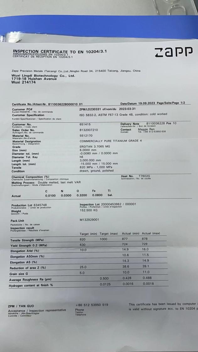 專利基礎:德國ZAPP四級冷作鈦加工工藝
