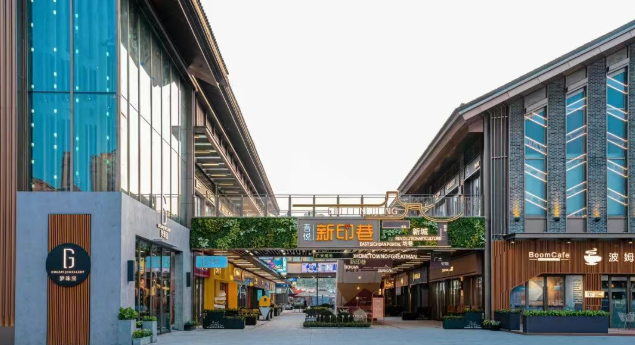 “印巷”深入挖掘城市歷史脈絡與文化符號,將商業運營與在地文化融合。街區采用開放式布局,秉持“小尺度、高質感”設計原則,通過錯落店鋪排布、綠意環繞路徑與露天座區,營造步步皆景的體驗。沿街外擺區將咖啡座、花架與手作展臺自然融入;墻面涂鴉、潮流雕塑與創意掛飾點綴其間。城市文化符號被融入建筑立面與景觀設計,使街區成為可感知的文化載體。