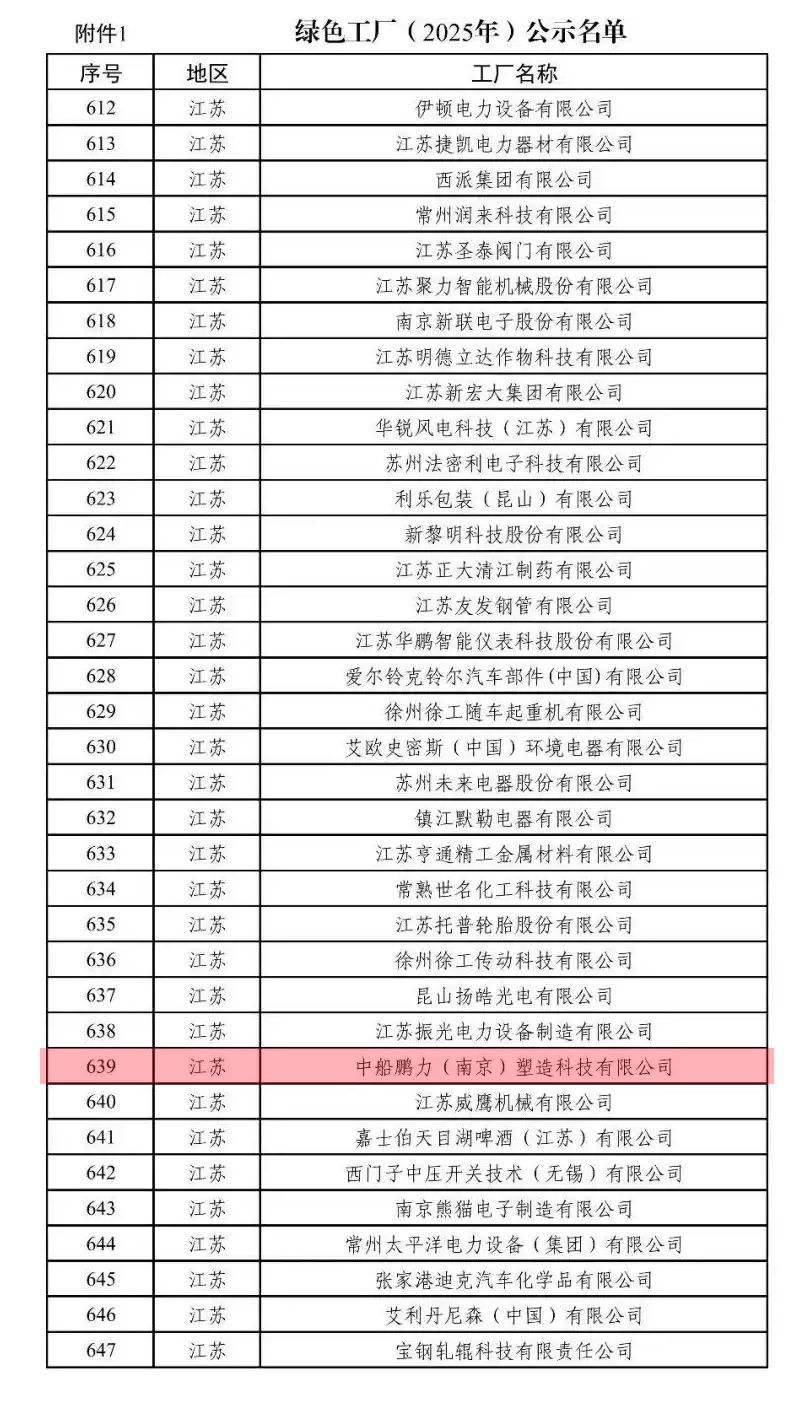 3月18日,工業和信息化部公布綠色工廠、綠色工業園區(2025年度)名單,鵬力塑造憑借在綠色制造領域的優異表現,成功躋身國家綠色工廠行列。這是公司繼國家級制造業單項冠軍企業后,斬獲的又一項國家級殊榮。