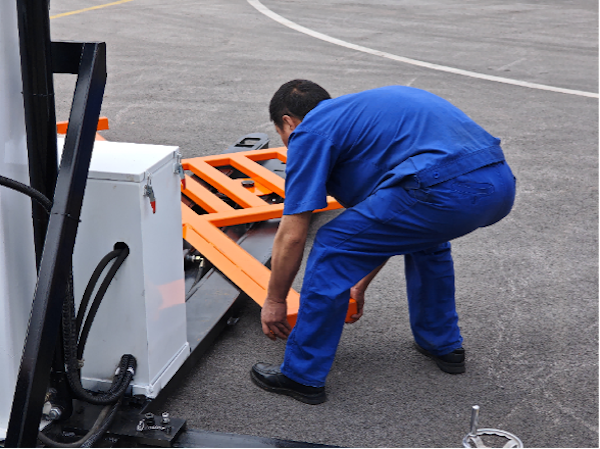 該設備融合全電動托盤搬運、液壓同步升降、智能電氣控制與高強度結構設計等先進技術,升降高度可在2米至7.2米之間精準調節,輪胎力臂支架適配90毫米至210毫米的擋泥板高度,覆蓋主流貨車車型。設備機動性強,顯著降低對固定卸車點位及人力資源的依賴,優化物流調度流程。整套設備拆裝僅需2人、15分鐘內即可完成,無需專用工具,大幅提升了作業準備效率。