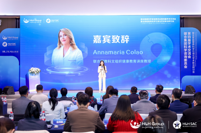 H&H SAC作為健合集團旗下科研學術創新平臺,在本次大會中充分展現了強大的國內外高校、科研院所、協會及國際權威資源優勢。聯合國教科文組織健康教育講席教授Annamaria Colao通過視頻表達了對于與H&H SAC成功合作的喜悅。她表示,過去與H&H SAC共同推進了近十項深入的科學倡議,并將研究成果成功轉化為實際應用,未來雙方將繼續合作,攜手建立精準營養的代際標準,為全家庭健康注入科學動能。
