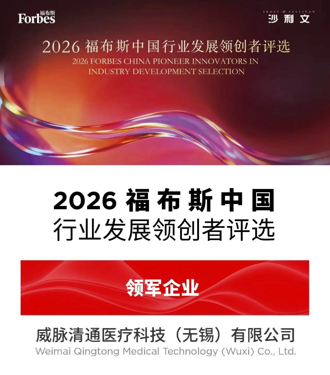 3月18日,由福布斯中國與弗若斯特沙利文聯合主辦的“2026福布斯中國行業發展領創者評選榮耀盛典”在上海成功舉辦。YOUMAGIC舒立緹研發公司威脈醫療榮獲大會頒發的“領軍企業”大獎。