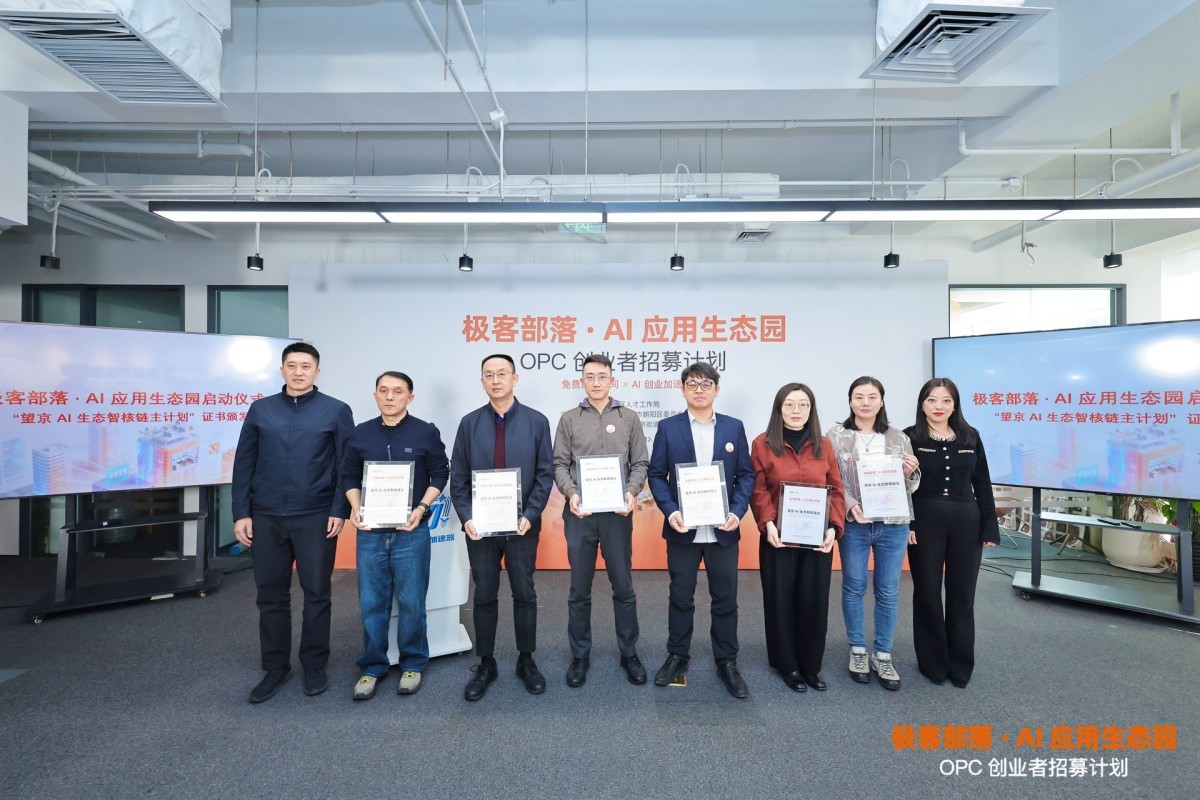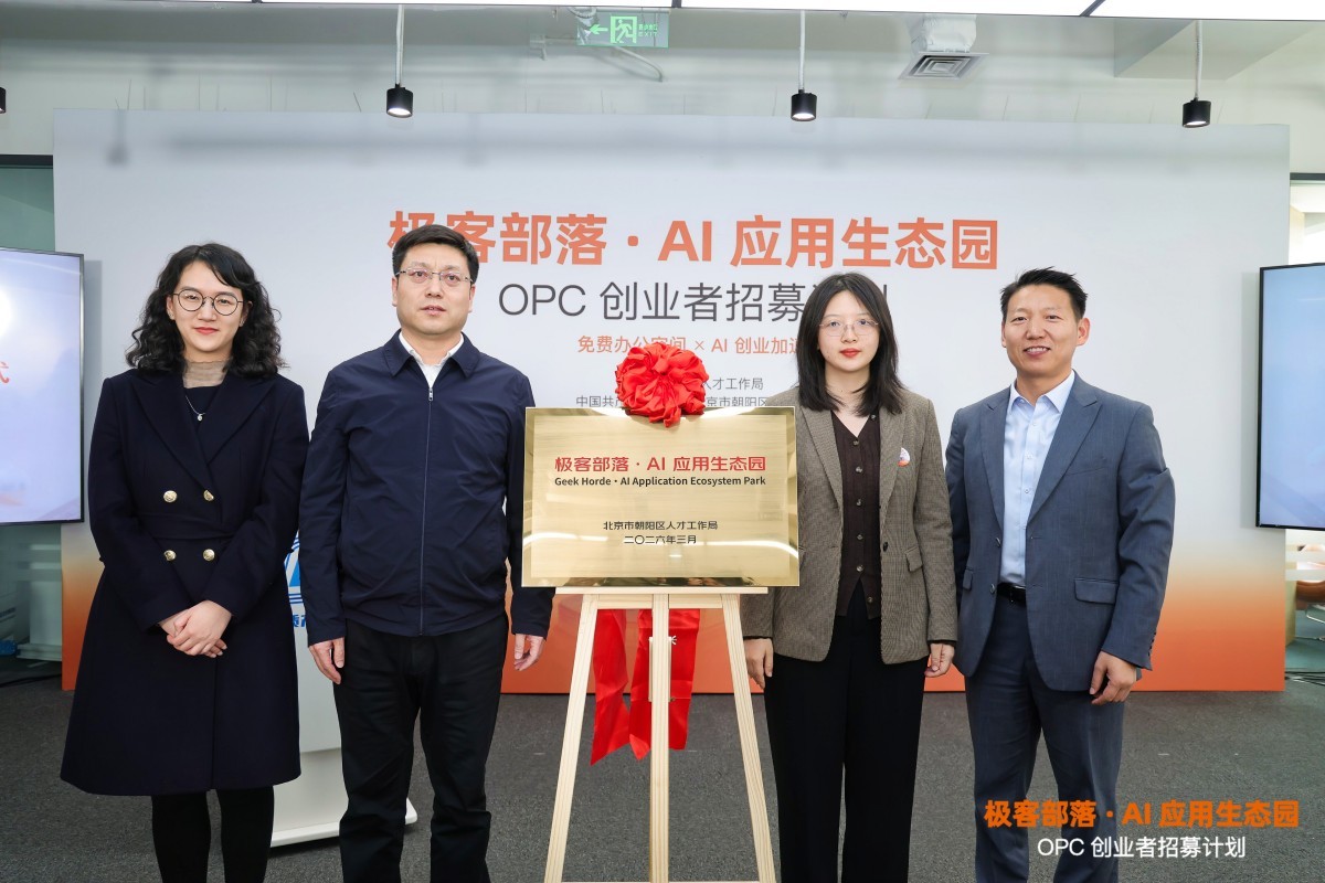 3 月 20 日下午,由北京市朝陽區人才工作局、中國共產主義青年團北京市朝陽區委員會、北京市朝陽區人民政府望京街道辦事處聯合指導,北京極客邦科技有限公司主辦的“極客部落AI應用生態園· OPC 創業者招募計劃”開放日活動,在望京街道聯絡大廈新質生產力加速器舉行。