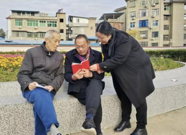 (圖為浠水煙草志愿者在公園向老年人普法)