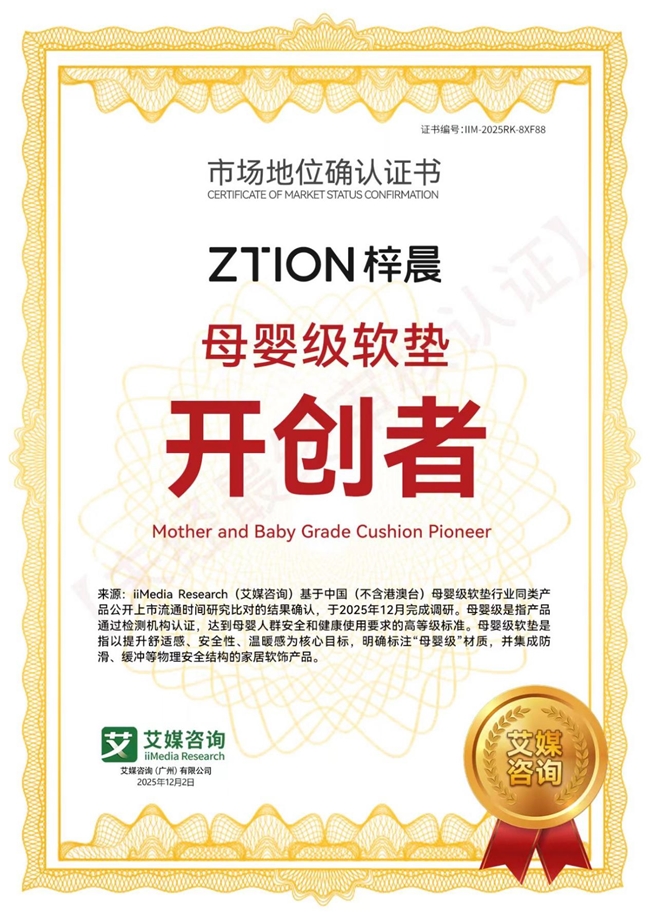 在品質消費與健康家居理念深入人心的當下,家居軟飾的安全與品質,早已成為億萬家庭挑選家居用品的核心考量。梓晨率先將“母嬰級”材質與工藝標準引入家居軟裝領域,開創了“母嬰級軟墊”新品類,并由此榮獲 “母嬰級軟墊開創者”的行業稱號。