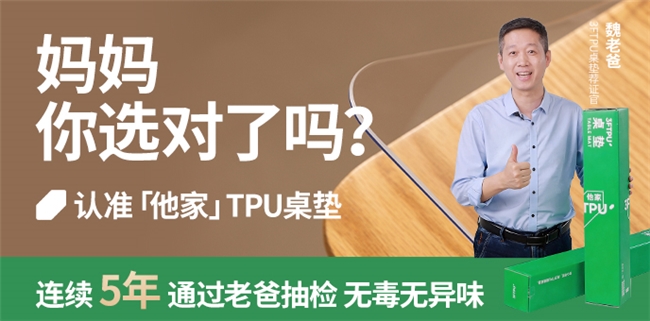 旗下爆款3FTPU桌墊,更是順利通過老爸抽檢全項嚴苛測試,成為健康軟墊品類首個官方推薦產品,讓全家使用更安心。其他拳頭產品:防水透明桌墊采用德國進口TPU純凈新料,完全拒絕回收料,確保品質卓越。食品級硅膠為原料制成奶嘴硅,耐高溫消毒、不易老化。專利防滑地墊采用優質PVC材質,優良的防污特性及特別防滑設計都深得消費者青睞,銷量領先。